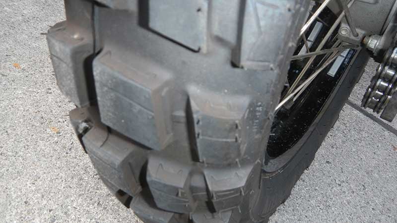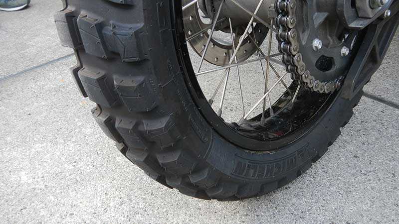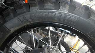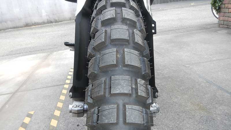 タイヤはミシュラン このブロックタイヤはロードでも滑らない優れ物らしいです |