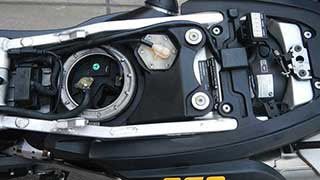シート下のガソリンタンク上部 |