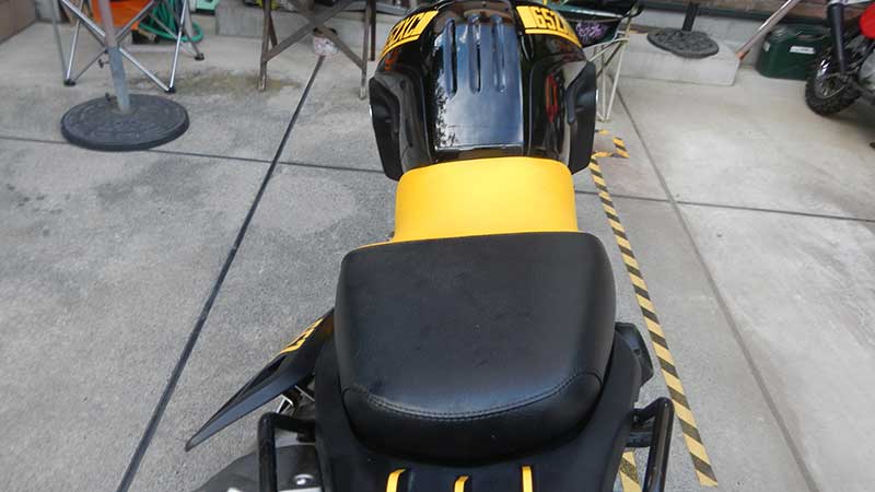 ドライバーシートは黄色、タンデムシートは黒とボディカラーとシンクロ |