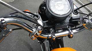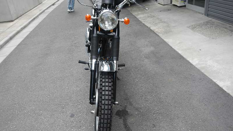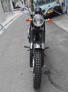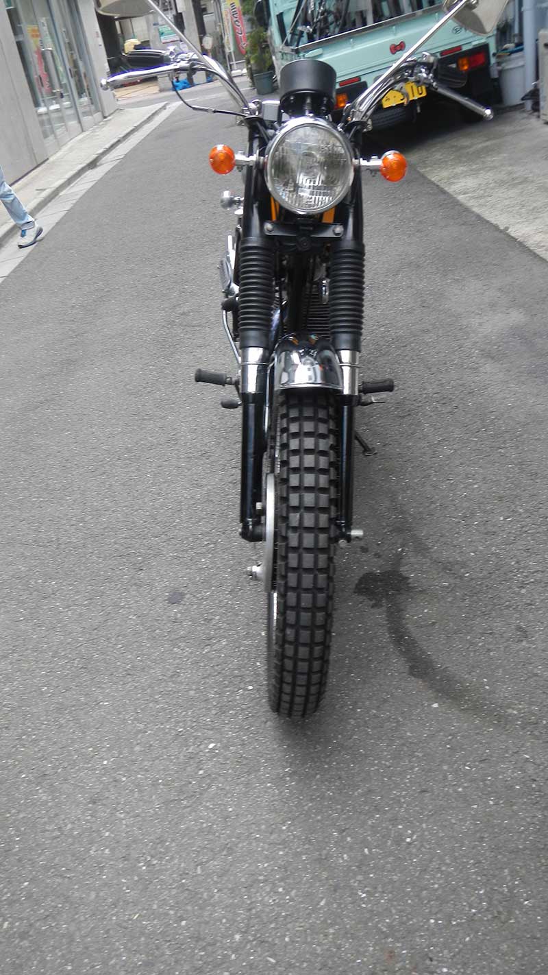 正面 アップハンドルにキャラメルタイヤはエンデューロらしい |