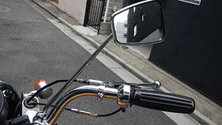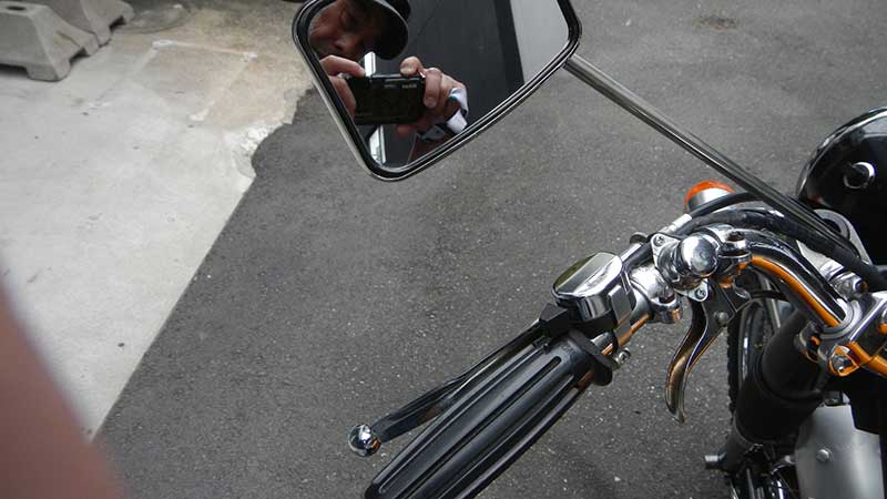 右側スロットル、ブレーキケーブルも新品に代わっている ミラーは英製スタジアム |
