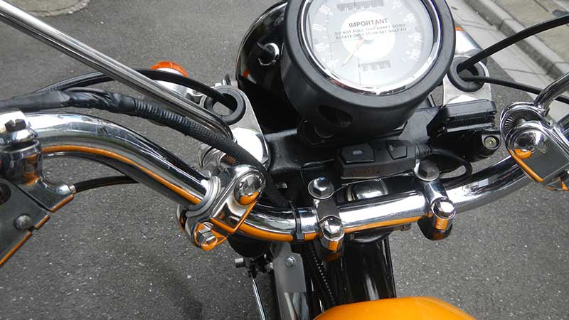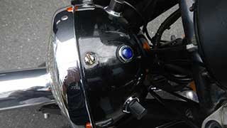 トライアンフなどと共通のルーカステール 右の黒のはドライブレコーダー |