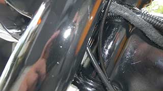 右側全景 エンジンクランクケースに沿ったアップのエキパイとかわいいマフラー |