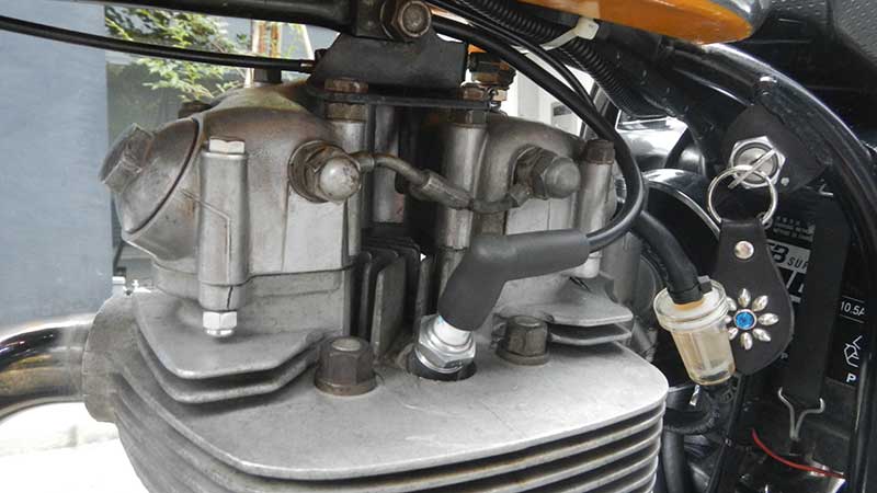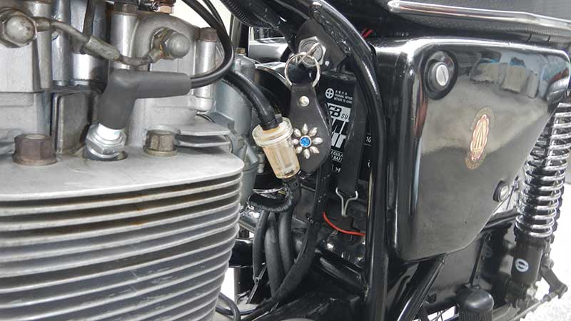 現状すごく綺麗なので聞きましたところ前オーナーさまご自身がエンジン、キャブを全バラして電装品をパーツを全て交換して組み直した物なので新車同様です。