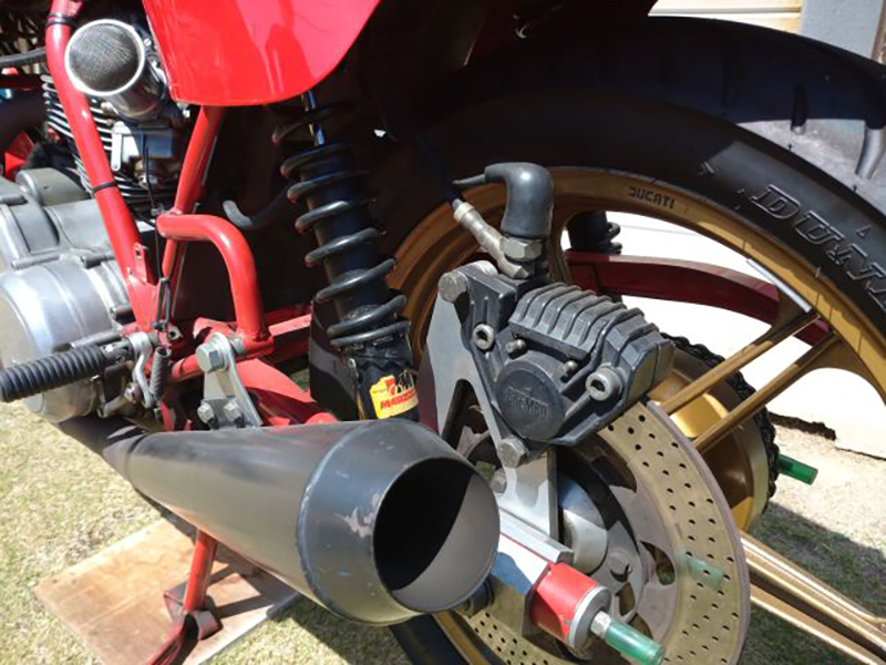 マルゾッキ製サスペンション マフラーエンドは大径ですが、心地よい音量です |