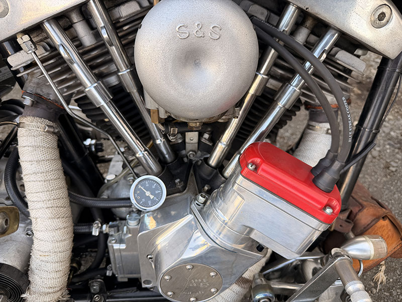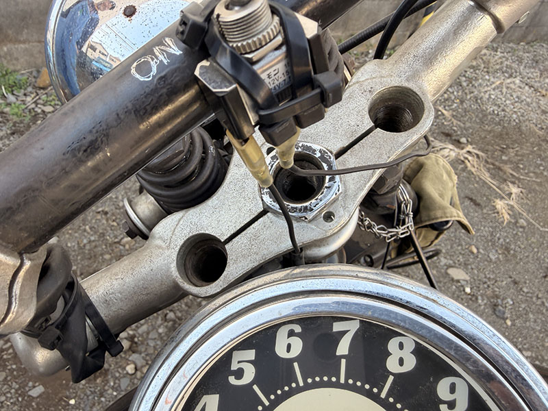 エンジン始動はS&Sキャブお約束の空キックによる掃気-上死点からしっかり下まで蹴り下ろす、の儀式が必須です。