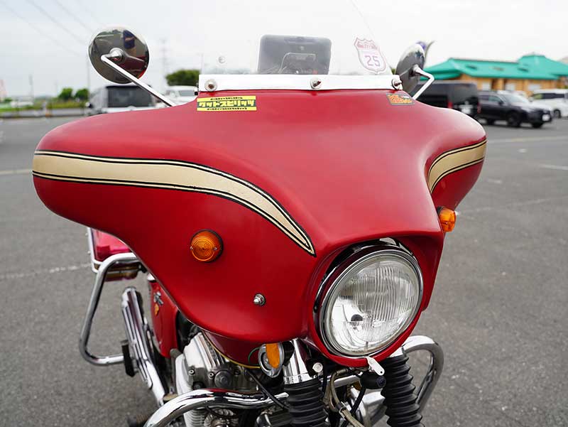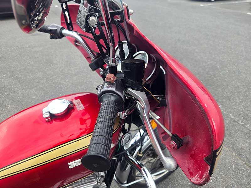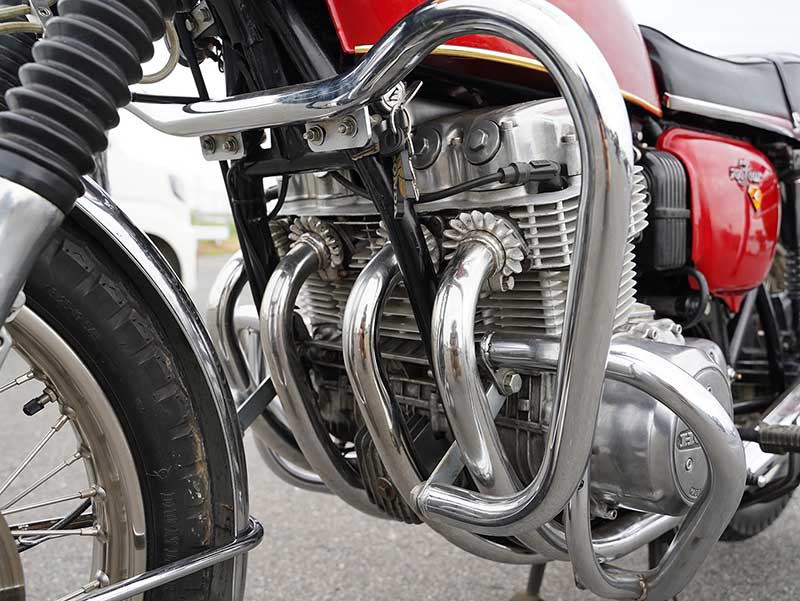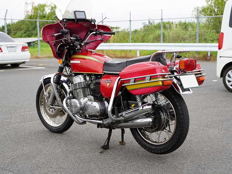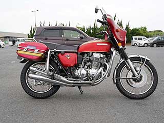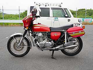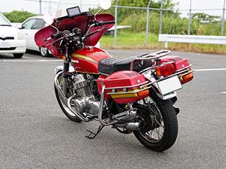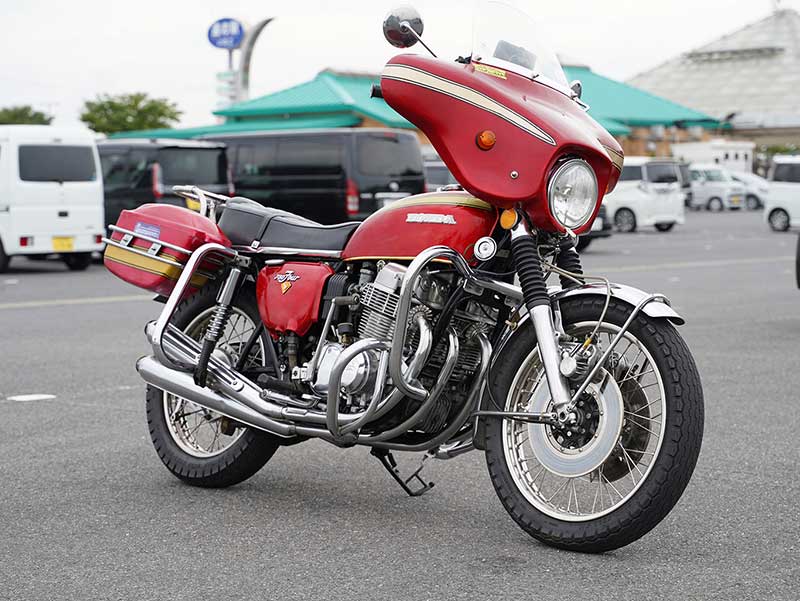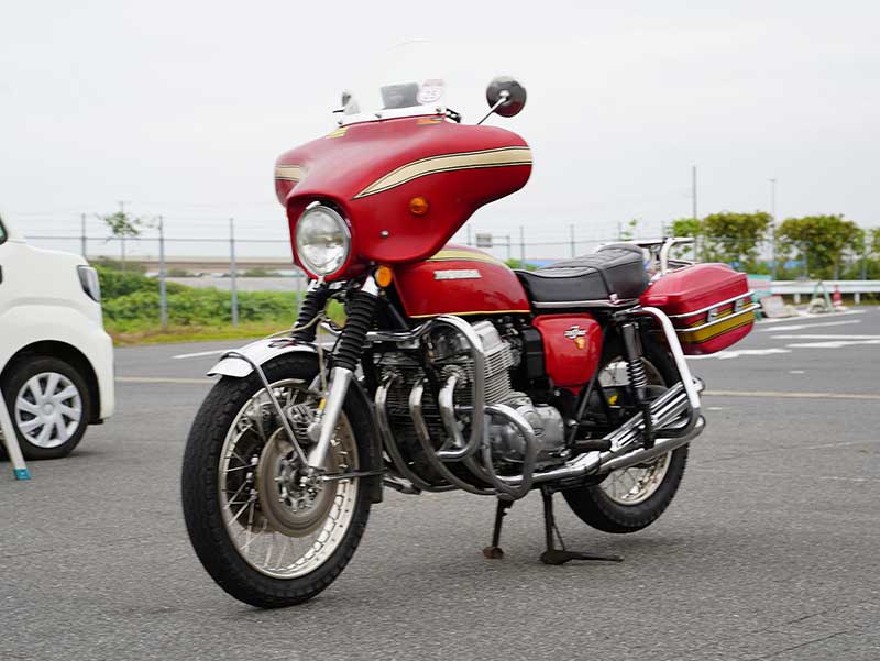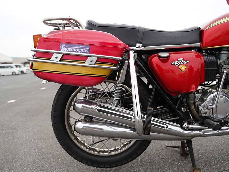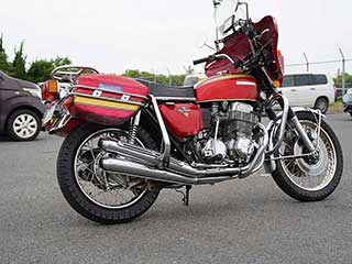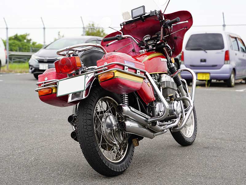 | ■■■■概要と担当者の所感■■■■ ご覧いただきありがとうございます。 現オーナー様は1980年に知り合いの方からこちらの車両を購入されており、今回取材させて頂いた2025年現在までおよそ45年もの間、大切に所有されてきました。途中何年かナンバー返納期間を挟みましたが、その間も定期的にエンジンをかけており状態維持に気を遣われていました。そして2020年頃から公道復帰するべくオーバーホール(以降OH)作業をはじめ、約3年の月日と多大な費用をかけ見事公道復帰を果たしました。 公道復帰以降、オーナー様自身で整備やカスタムを楽しまれ、現在でも車検を継続してしっかり走行ができる状態です。今回のこちらのバイクも年式の古い1台ではありますが、飾っておくよりも気兼ねなくどんどん乗れるバイクをモットーに仕上げたとのことで、ロングツーリング仕様にモディファイをされバイク旅を楽しまれております。 過去にもホンダCB系をはじめ複数台バイクを所有してきたオーナー様は、ご自宅に重整備も可能なガレージを構え、ご自身でバイクの整備やエンジンのオーバーホールをこなしておられます。今回ご紹介するバイクもオーナー様自身によってOHされ、これまでロングツーリングもトラブル無くこなし良好なコンディションを保っております。今回ガレージの整理のため、ぜひこちらのバイクを受け継いでくれる方へお譲りしたいとのことで掲載させて頂きました。 大変古く希少なバイクですが、オーナー様としては今後ずっとガレージで眠らせておくのではなくどんどん元気に走り続けてほしいとの思いがございます。そのため大変恐縮ではございますが以下に該当する方とは今回お取引をお断りさせて頂きます。どうか悪しからずご了承ください。 ------------------------------------------------------------- 車両の詳細については以降に記載いたしますので、長文ではございますがぜひご一読ください。随所にオーナー様のこだわりと手間暇が込められた一台です。 これからの人生をこのバイクと共に走っていただける方、ぜひご連絡をお待ちしております。