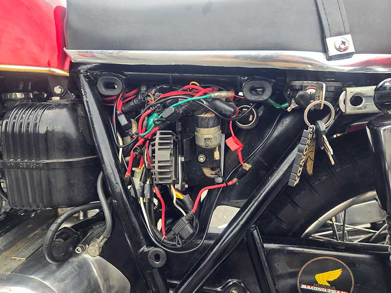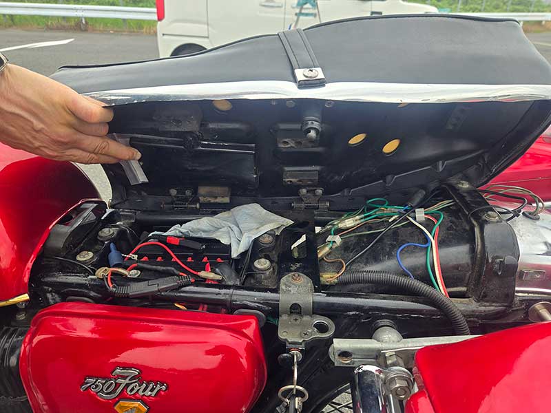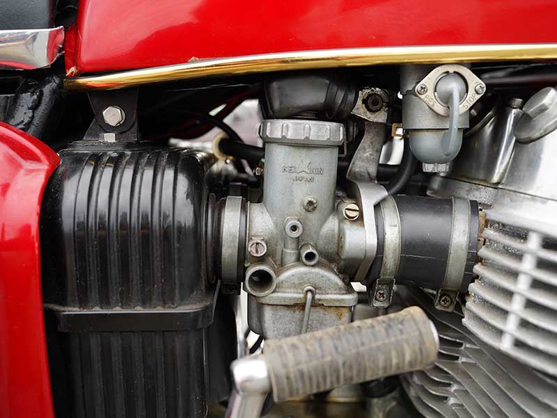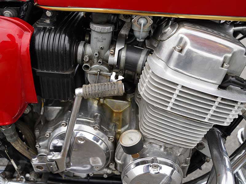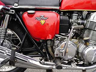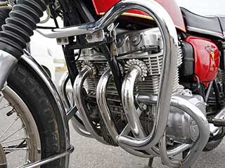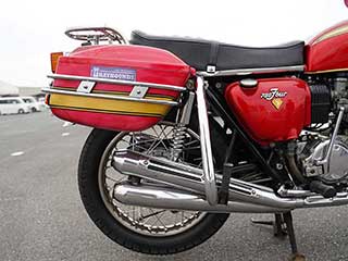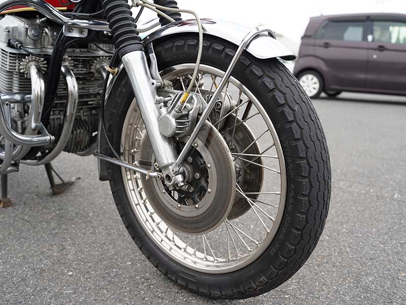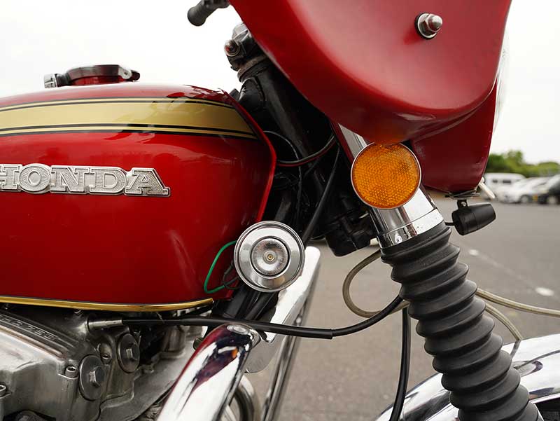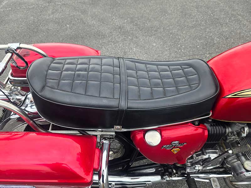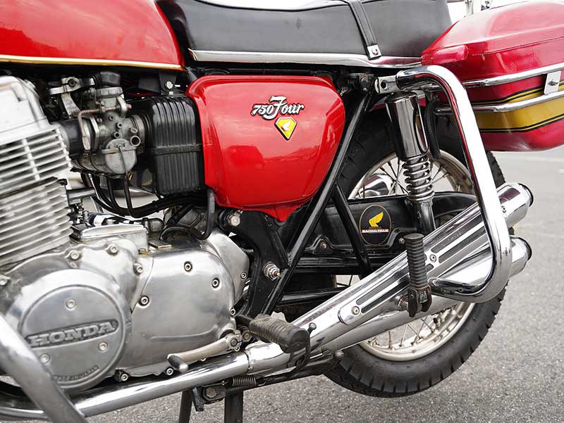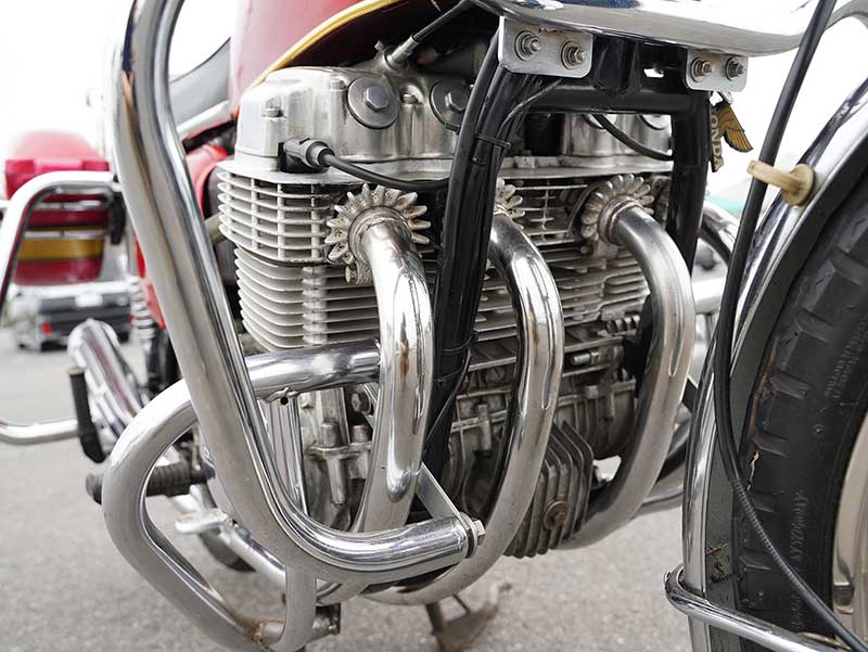 | ■■■■概要と担当者の所感■■■■ ご覧いただきありがとうございます。 現オーナー様は1980年に知り合いの方からこちらの車両を購入されており、今回取材させて頂いた2025年現在までおよそ45年もの間、大切に所有されてきました。途中何年かナンバー返納期間を挟みましたが、その間も定期的にエンジンをかけており状態維持に気を遣われていました。そして2020年頃から公道復帰するべくオーバーホール(以降OH)作業をはじめ、約3年の月日と多大な費用をかけ見事公道復帰を果たしました。 公道復帰以降、オーナー様自身で整備やカスタムを楽しまれ、現在でも車検を継続してしっかり走行ができる状態です。今回のこちらのバイクも年式の古い1台ではありますが、飾っておくよりも気兼ねなくどんどん乗れるバイクをモットーに仕上げたとのことで、ロングツーリング仕様にモディファイをされバイク旅を楽しまれております。 過去にもホンダCB系をはじめ複数台バイクを所有してきたオーナー様は、ご自宅に重整備も可能なガレージを構え、ご自身でバイクの整備やエンジンのオーバーホールをこなしておられます。今回ご紹介するバイクもオーナー様自身によってOHされ、これまでロングツーリングもトラブル無くこなし良好なコンディションを保っております。今回ガレージの整理のため、ぜひこちらのバイクを受け継いでくれる方へお譲りしたいとのことで掲載させて頂きました。 大変古く希少なバイクですが、オーナー様としては今後ずっとガレージで眠らせておくのではなくどんどん元気に走り続けてほしいとの思いがございます。そのため大変恐縮ではございますが以下に該当する方とは今回お取引をお断りさせて頂きます。どうか悪しからずご了承ください。 ------------------------------------------------------------- 車両の詳細については以降に記載いたしますので、長文ではございますがぜひご一読ください。随所にオーナー様のこだわりと手間暇が込められた一台です。 これからの人生をこのバイクと共に走っていただける方、ぜひご連絡をお待ちしております。