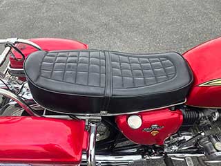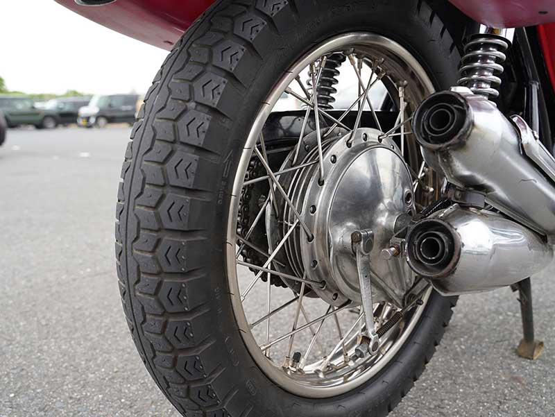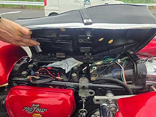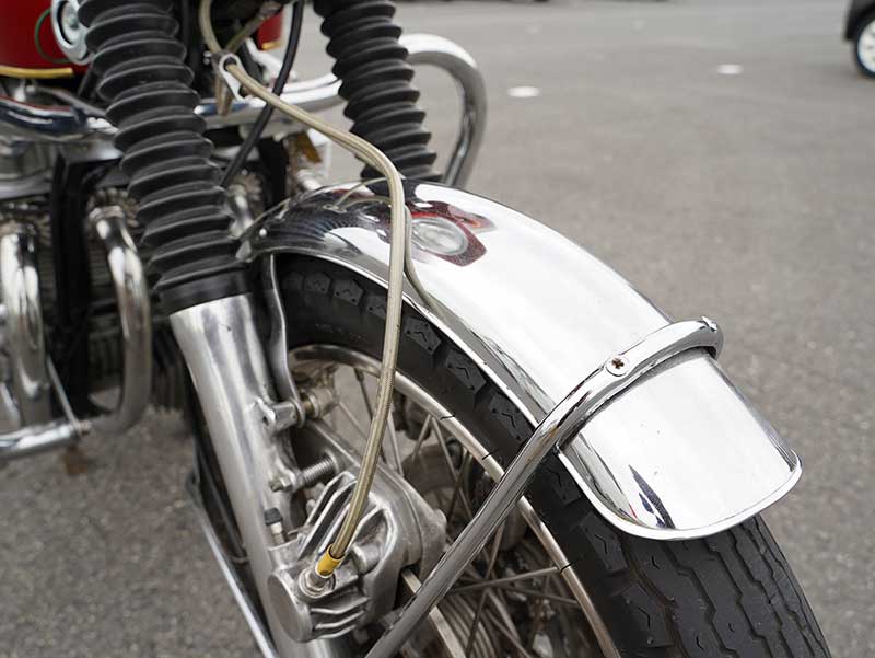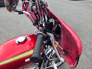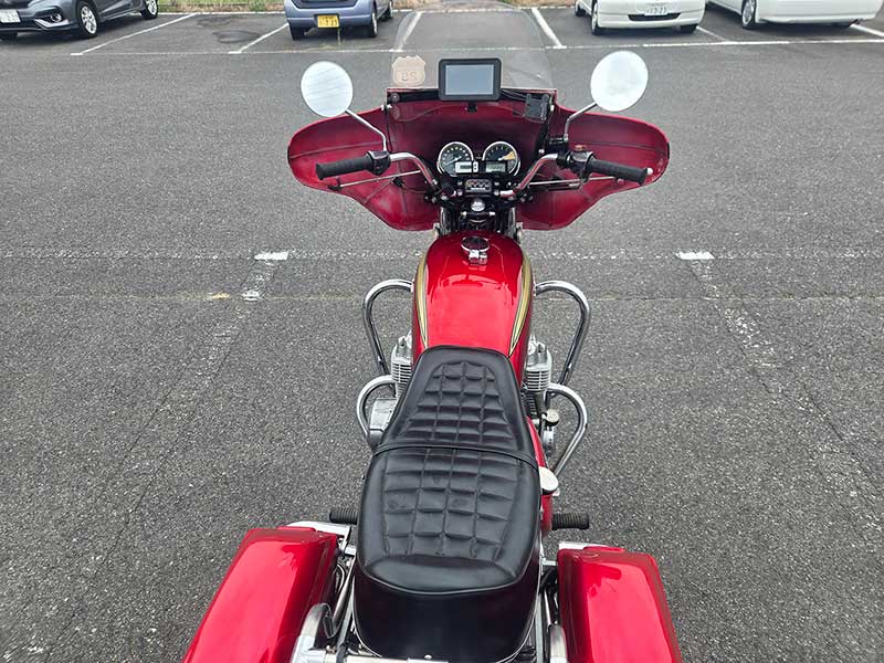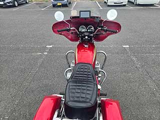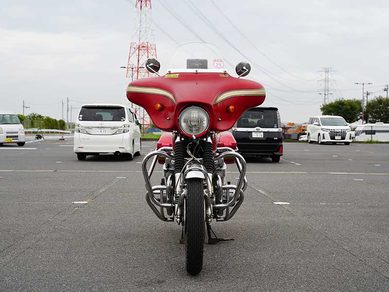■■エンジン■■ キャブレタ車の特徴でもありますが、冷間始動時は少しアクセルを開けて暖機してやる必要があるとのことです。暖機後は安定してアイドリングしておりました。始動の様子が動画にてご確認いただけますのでぜひご覧ください。 ・ シリンダ ・シリンダブロック ・バルブ ・ピストン ・そのほか ■■外装■■ オーナー様によってフロントカウル + パニアケースが装着されロングツーリング仕様にモディファイされています。フロントカウルはハーレーの純正品を加工して取り付けされております。またパニアケースもステーをワンオフで製作され装着されております。ウィンカは純正品が取ってあるそうですので純正仕様の外装に戻すことも可能です。 純正のエンジンガードとワンオフのリアキャリアが装着されております。 リアフェンダに当時物の証であるタイヤ空気圧ステッカがそのまま残っております。剥がされてしまっていたりフェンダごと社外品に交換されているケースが多いらしく、珍しい一品かと思います。 ■■吸気/排気■■ ・キャブレタ ・マフラ ■■トランスミッション・クラッチ■■ ・トランスミッション ・クラッチ ■■フレーム■■ 一旦すべての部品を外した上、再塗装が施されています。 ■■タイヤ・懸架装置■■ 前後ホイールはリム・スポーク共に英国CWC製のステンレス製に交換されております。 ■■ブレーキ■■ フロントがダブルディスクになっております。ディスクやキャリパは純正品が使用され、マスターシリンダはデイトナ製となっております。 ■■タンク■■ 社外品レプリカになります。エンブレムだけ当時のタンクから移植されております。燃料コックは新品に交換されております。 ■■シート■■ 社外品に交換されております。交換した純正も保管してあるそうですのでご希望ございましたらお付けできます。 ■■計器・灯火・電装■■ スピードメータ ・ タコメータ共に純正です。4つのインジケータランプも問題なく点灯しております。メータケーブルはスピード・タコともに闇矢屋製の新品に交換されております。 ■■ステアリング■■ ステムベアリングが純正のボール式からテーパローラ式に交換されております ■■そのほか■■ ドライブレコーダ,ナビ(Android Auto用)が装着されております。
