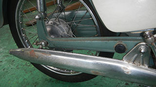 クロームマフラーは当時物と思われる傷がありますが腐りはない |