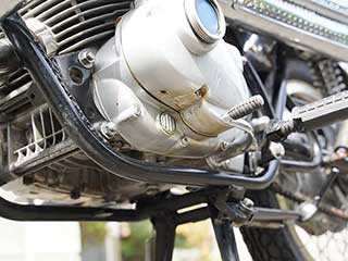 残念ながら左のキャブレターケース下部から多少のオイル漏れがございます。ご了承ください。