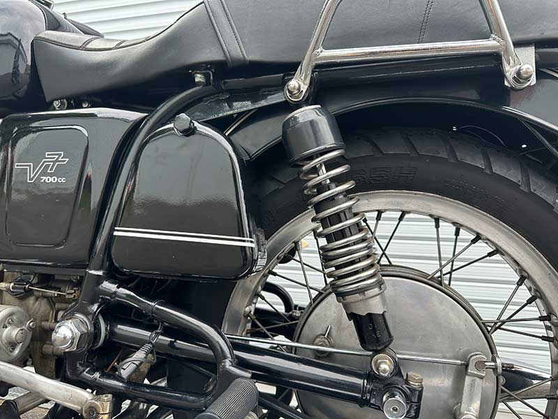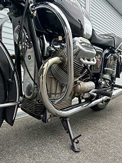 ━━━ バイクの説明 ━━━ Moto Guzzi V7 700 は、1967年に登場した同社初の大排気量縦置きVツインであり、以降の Special、850GT、California、Le Mans などすべてのモデルの原点となった一台です。 本車両はフレーム番号「VS」を持つ初期型で、ループフレーム特有の美しいラインと、クラシカルなブラック外装+クロームの組み合わせが大きな魅力です。 ━━━ 状態について ━━━ - 外装・機関は年式相応の経年があります。 ━━━ オーナーからのコメント ━━━ 長年、私自身のガレージで大切に保管しながら楽しんできた V7 700 です。 希少な初期型フレーム「VS」を持つこの個体は、単なる移動手段ではなく、Moto Guzzi の歴史を象徴する一台だと感じています。 ただの旧車としてではなく、「縦置きVツインの始まり」を所有する喜びを分かち合っていただける方に受け継いでいただければ幸いです。 ━━━ 現車確認について ━━━ 車両は京都府に保管されています。 個人情報保護のため、具体的な所在地はご連絡いただいた方にのみお知らせします。 ━━━ 購入について ━━━ 個人間売買となるため、消費税は発生しません。 ━━━ お問い合わせについて ━━━ 本車両は、個人売買情報サイト「バイクの杜」に掲載されている出品車両です。 記事の内容は、取材担当者が短時間のインタビューと実車確認を行った範囲でまとめたものであり、必ずしも全ての状態を網羅・保証するものではありません。 なお、車両の破損を防ぐため、取材担当者が試走による動作確認を行うことはしておりません。 |