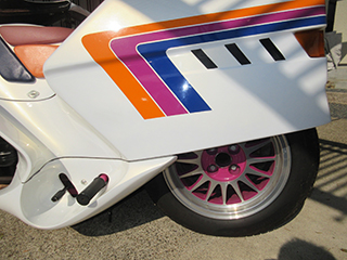 宇宙船のようなデザインでケブラーとFRPで構成された流線型のカウルに包まれ、ハブセンター・ステアリングを採用するなど、バイクの常識を覆す未来的なフォルムをしています。
