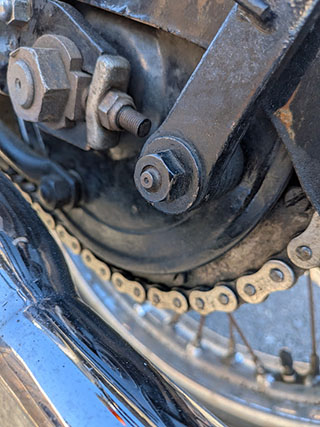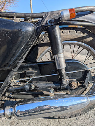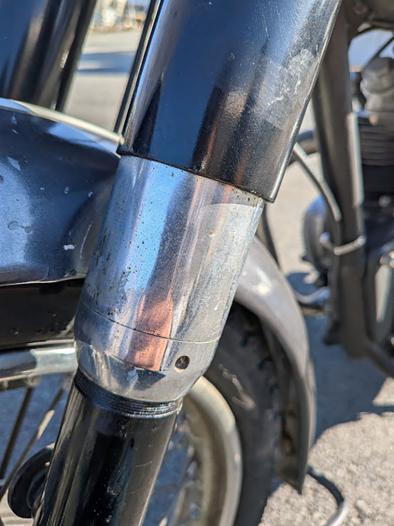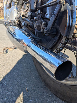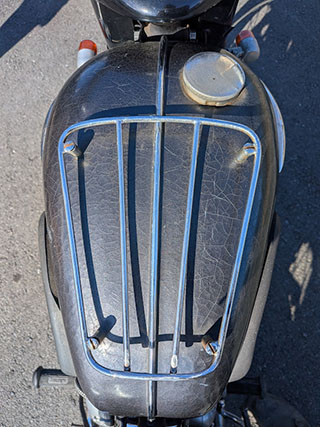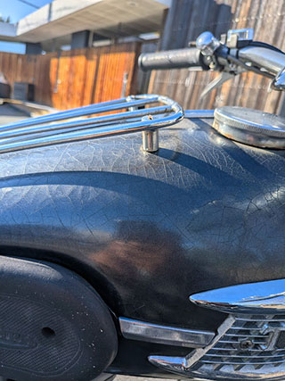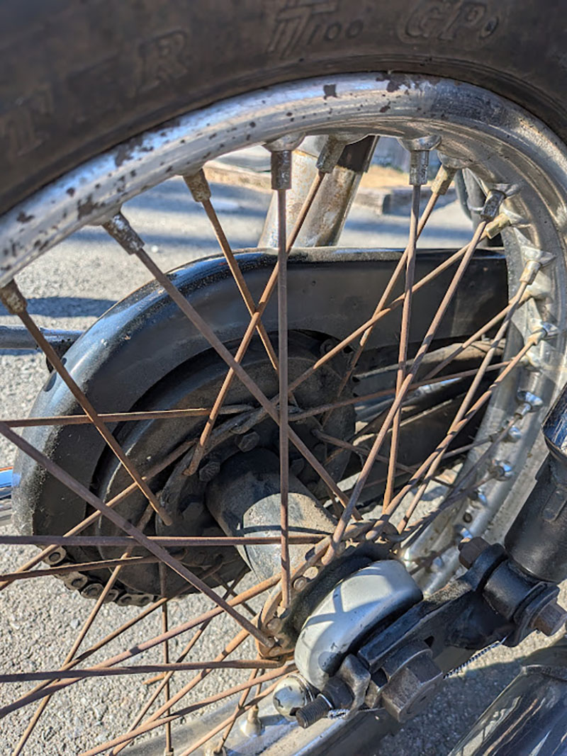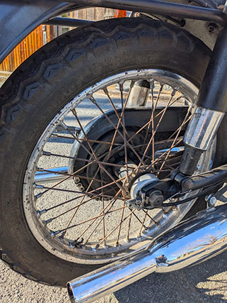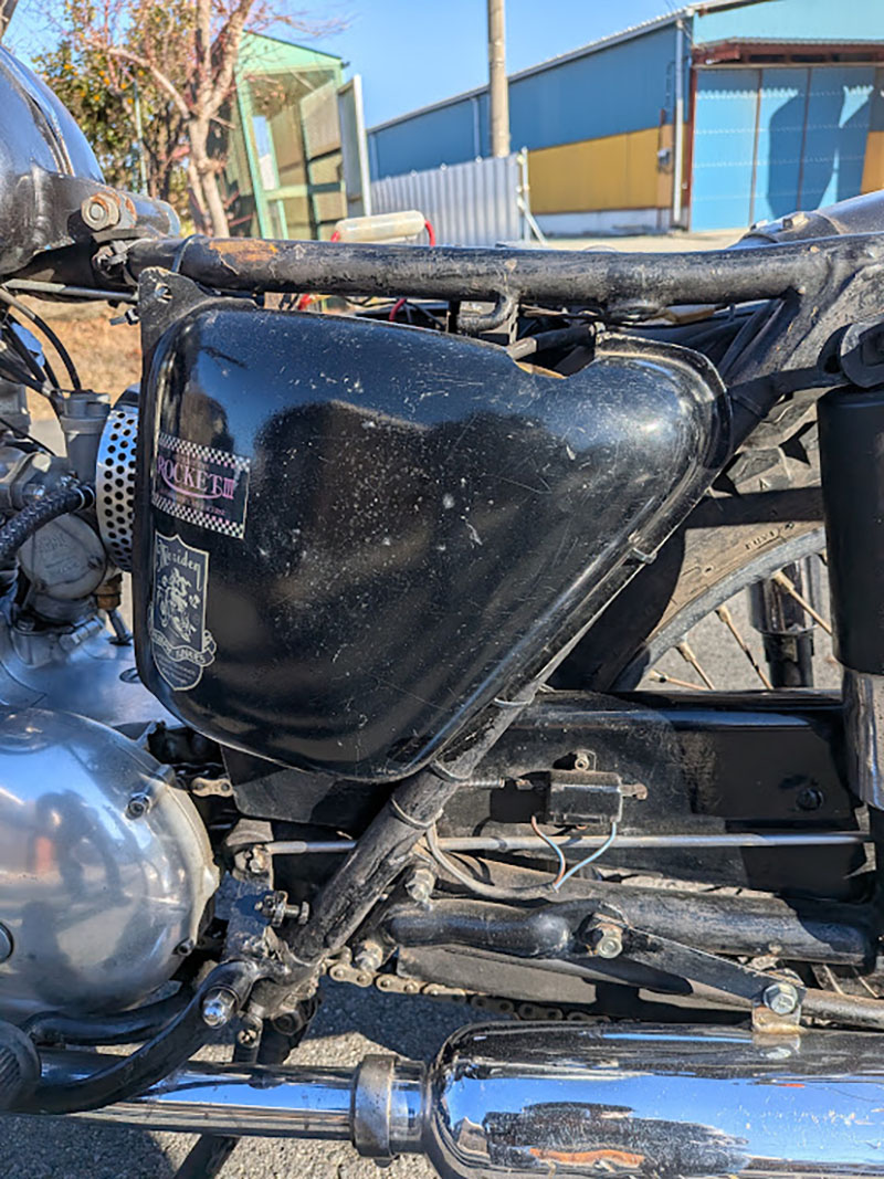 タンク等の外装品については一度塗装(自家塗装)していますが、一部劣化が始まっており、また、スポーク等のメッキ部分にはサビの発生が認められます。