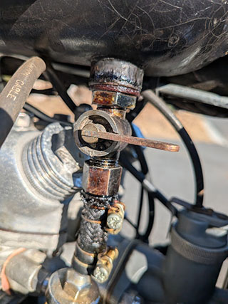 燃料コック部にガソリンの滲み(ボタボタ垂れる様なものではありません)